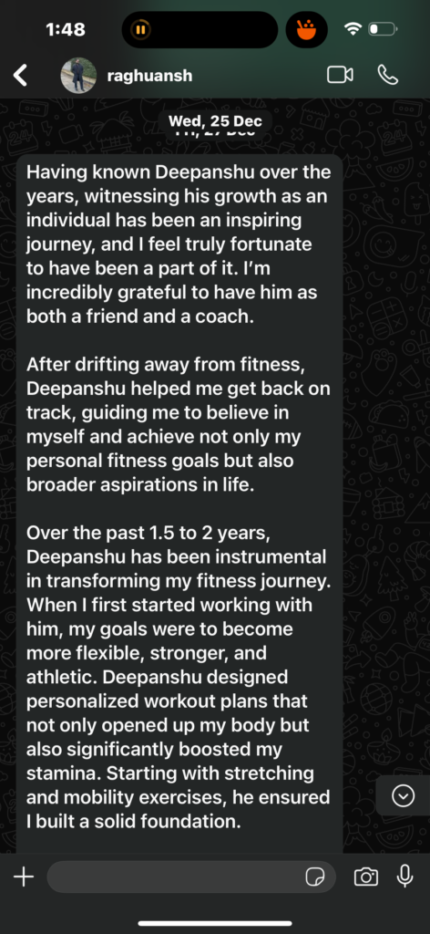 Hey! My name is Deepanshu Nagpal, and fitness has been a part of my life for over 15 years now. But this journey didn’t start with expertise—it started with frustration, curiosity, and an obsession with becoming the best version of myself.
